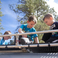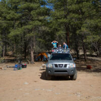 Ortega West is a bouldering area in the Carson NF that some friends of mine developed. I don’t climb much these days, but the parking spot makes for a great, remote camping spot anyway. I took the boys up there by myself for a getaway. It was muddy, which makes the roads up there ridiculously slippery, but it worked out okay for us.