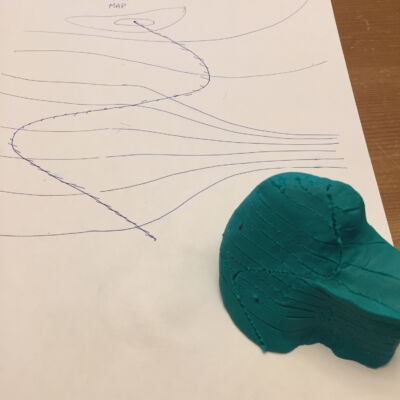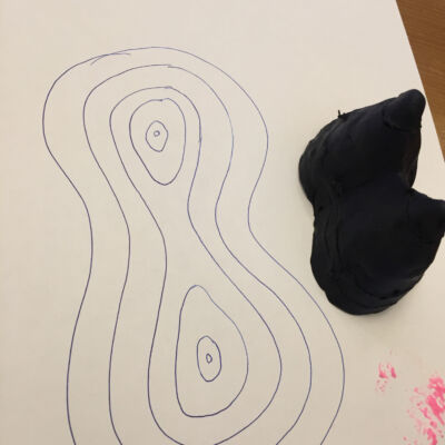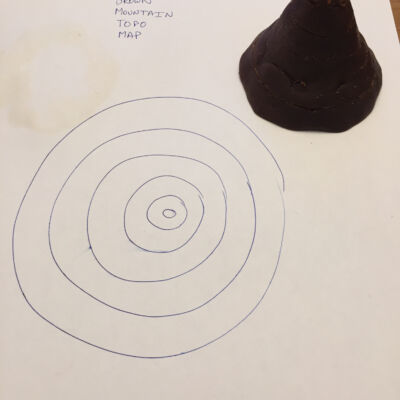When my boys got excited about maps, I took the opportunity to do a simple project to introduce them to topo maps. My goal was to teach the meaning of contour lines to the boys, with Playdough and paper. I formed the playdough into a “mountain”. Then I carved out contour lines on the Playdough mountain. Then I translated those contour lines to a piece of paper. The pictures below will explain my process (click to view the full image gallery).