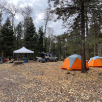 We returned to an area north of route 64 that we had visited in 2021. This time we did not drive up the hardcore road but selected a campsite just off the main forest road. It was gratifyingly fall-like weather, cold and rainy. It felt like we were a bit late for the best aspen colors, but this spot wasn’t very aspen-rich anyway.
