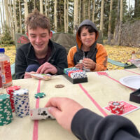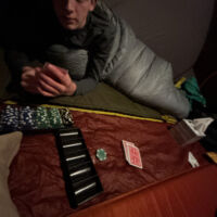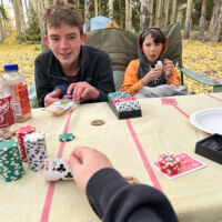 The boys brought cards and poker chips, that combined with the usual stick-seeking and whittling (we always bring home a half-dozen new sticks each trip) and reading books kept us occupied.
