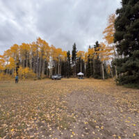 Also, the Aspens were perfect. We had been concerned that we missed the peak leaf coloring, but as we were rolling in on Thursday there were still plenty of patches that were green and few leaves were down on the ground, and when we rolled out on Sunday there was no green at all and half the leaves blanketed the ground from the wind we had received. So we had the best possible timing for this fall’s colors in that area.