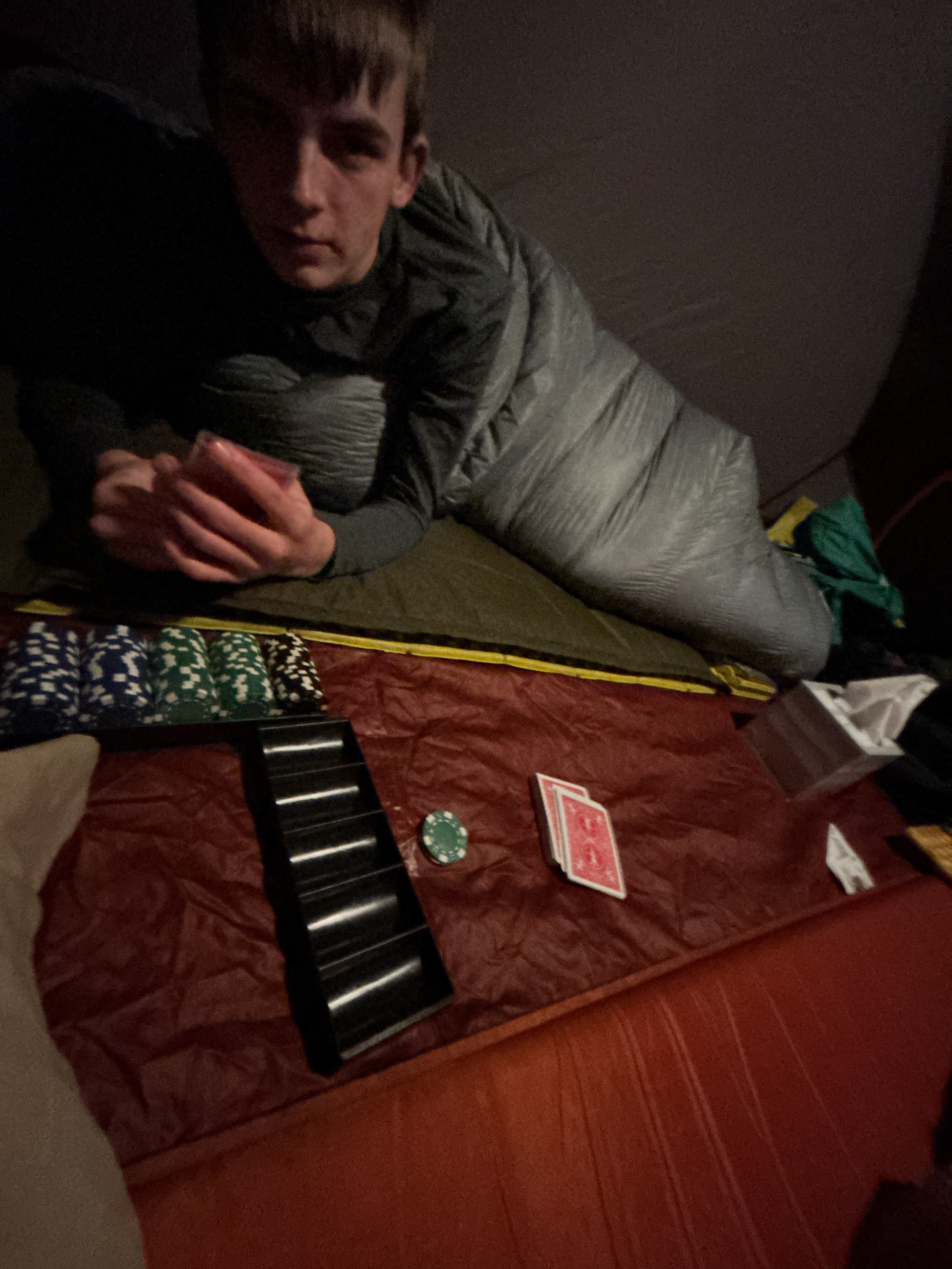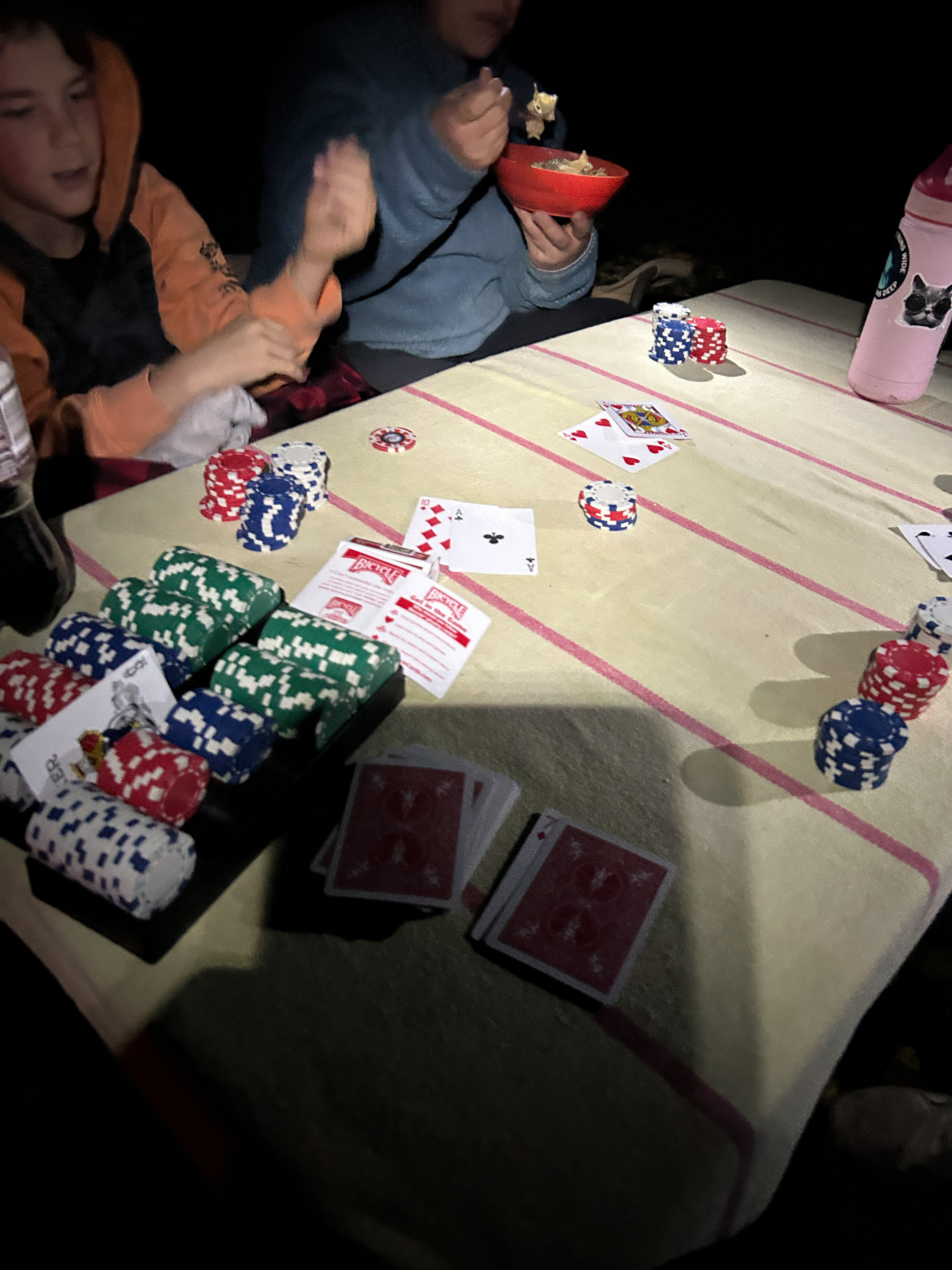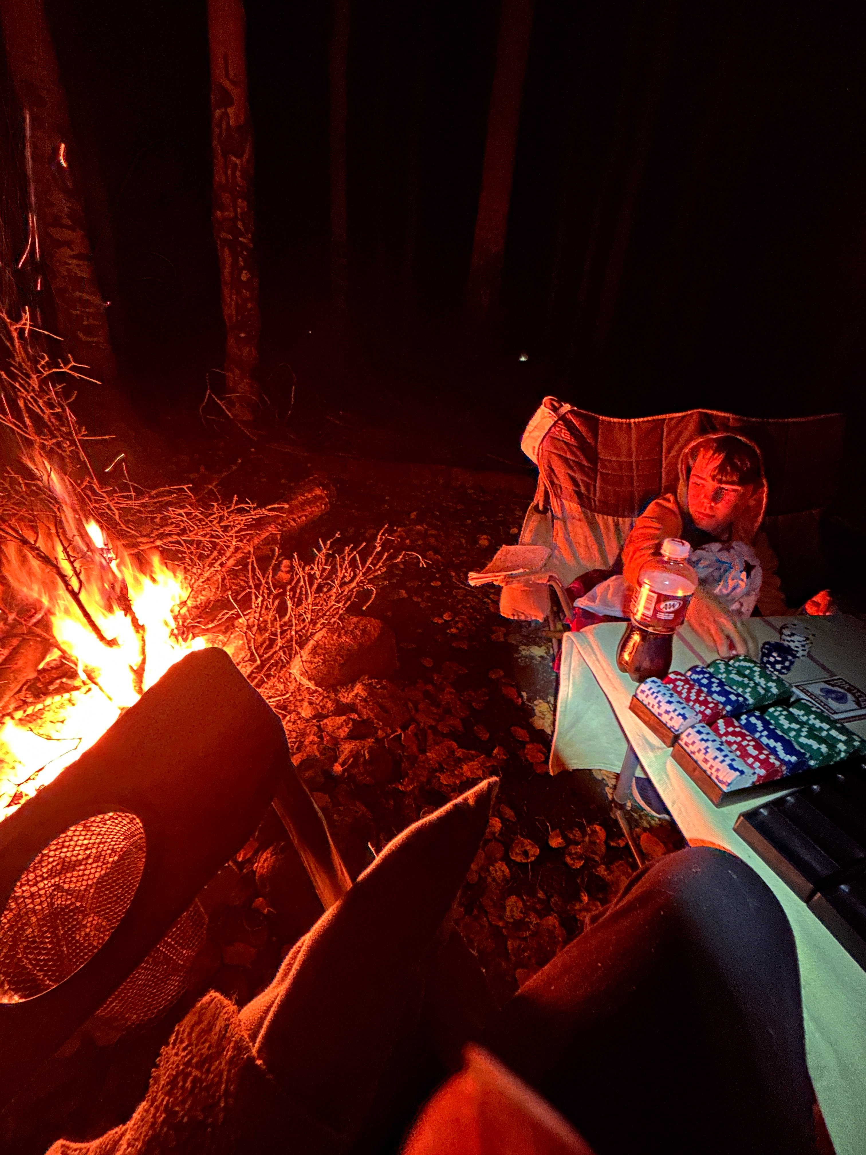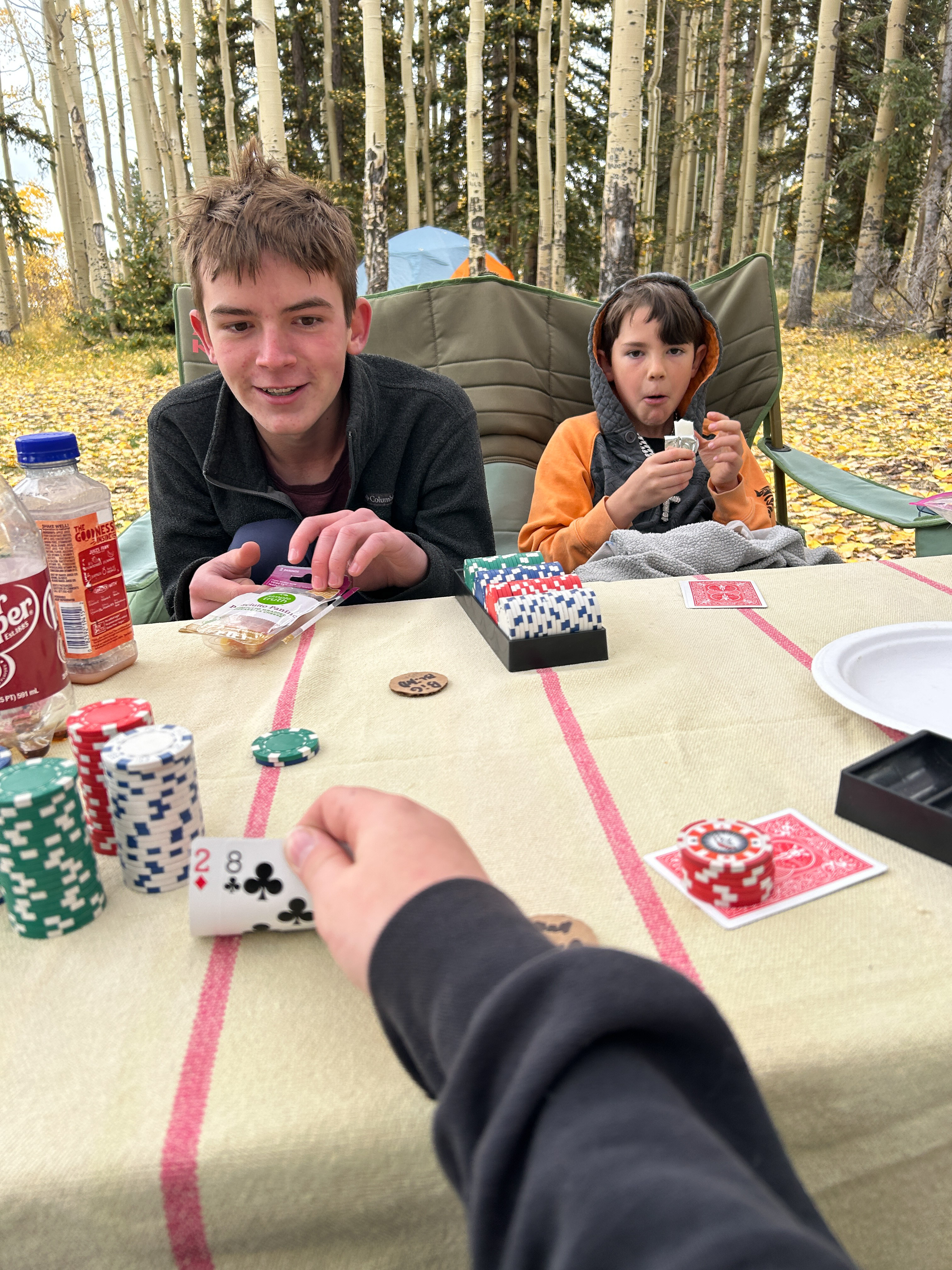 The boys brought cards and poker chips, that combined with the usual stick-seeking and whittling (we always bring home a half-dozen new sticks each trip) and reading books kept us occupied.