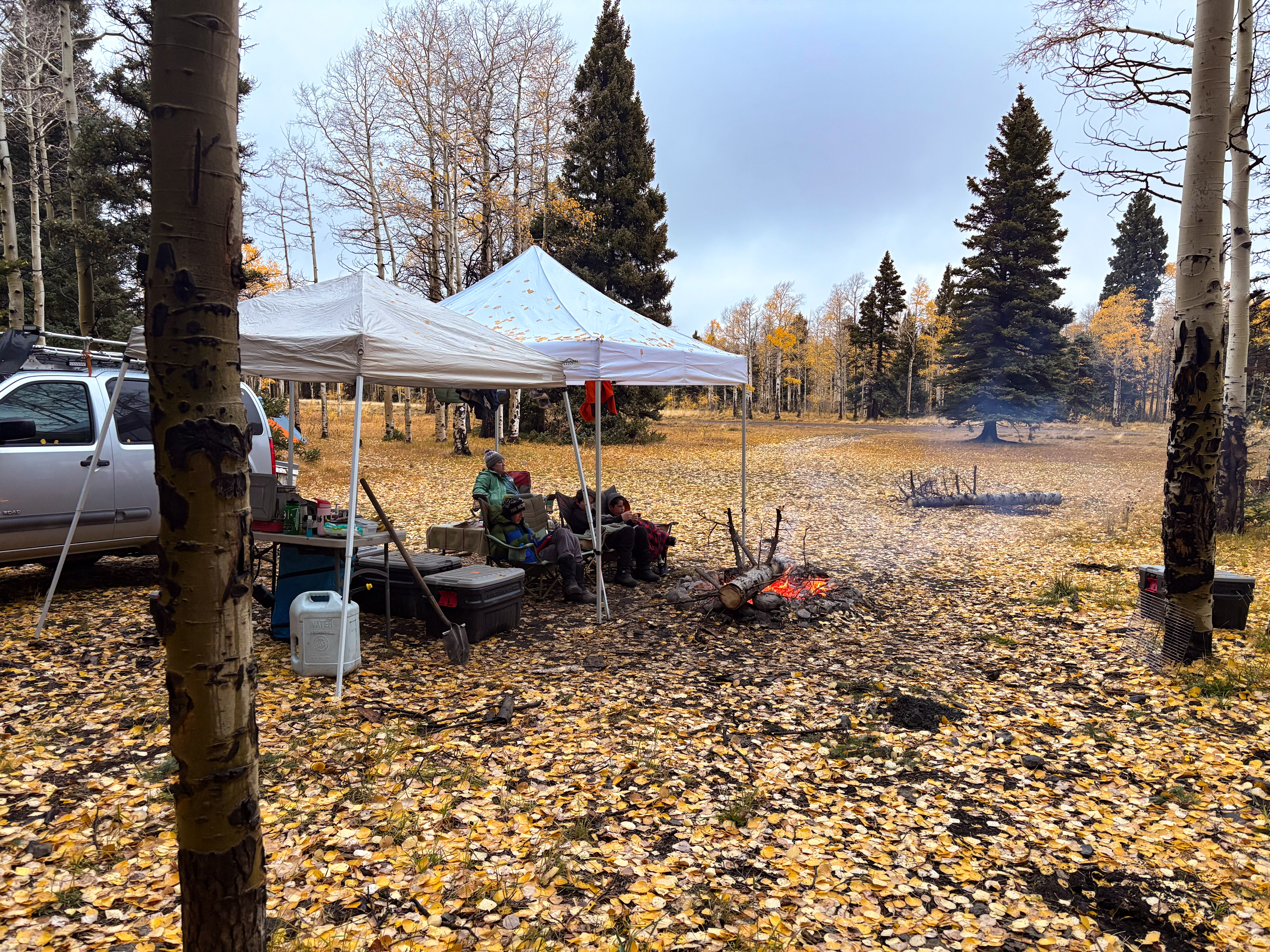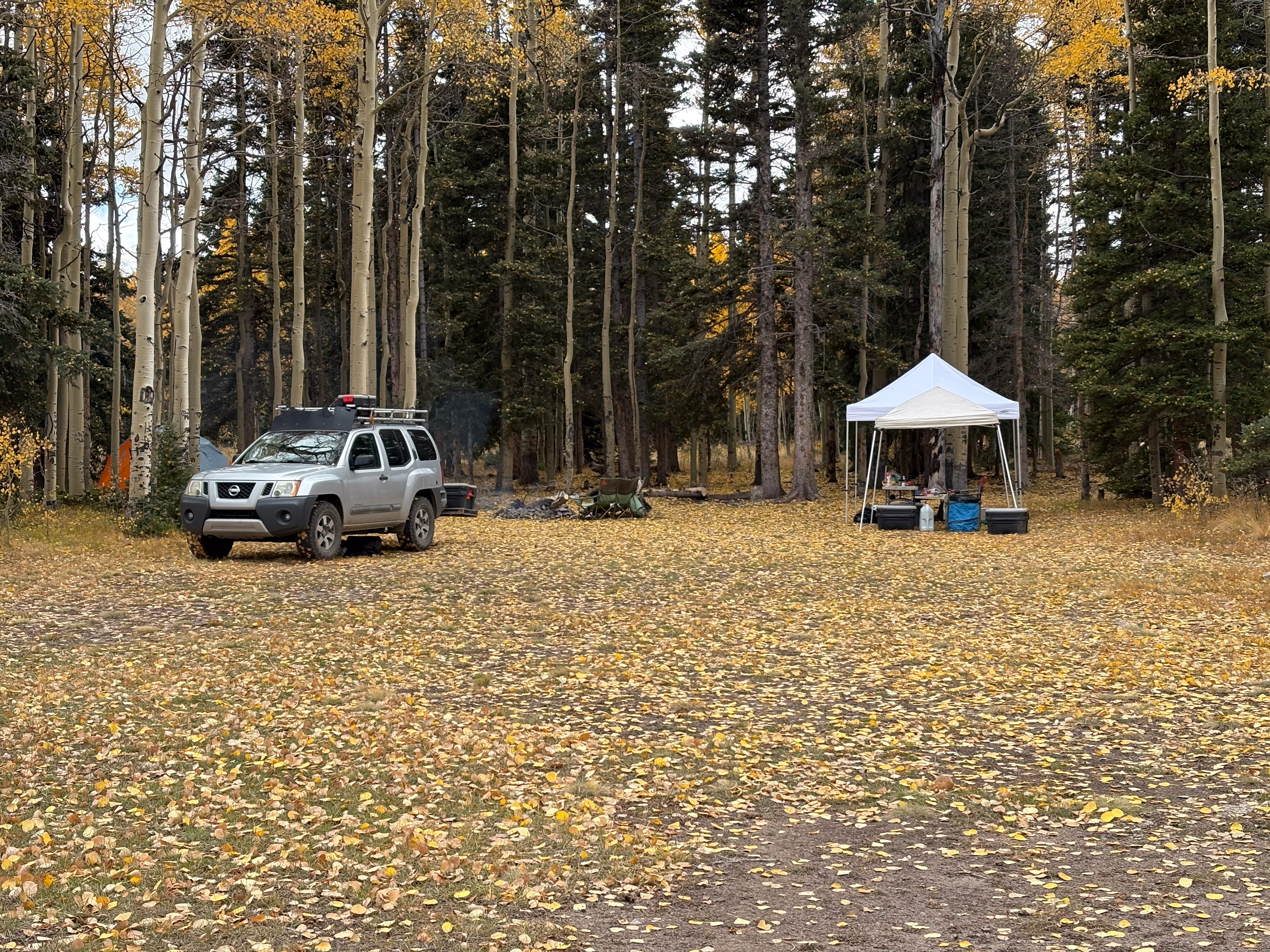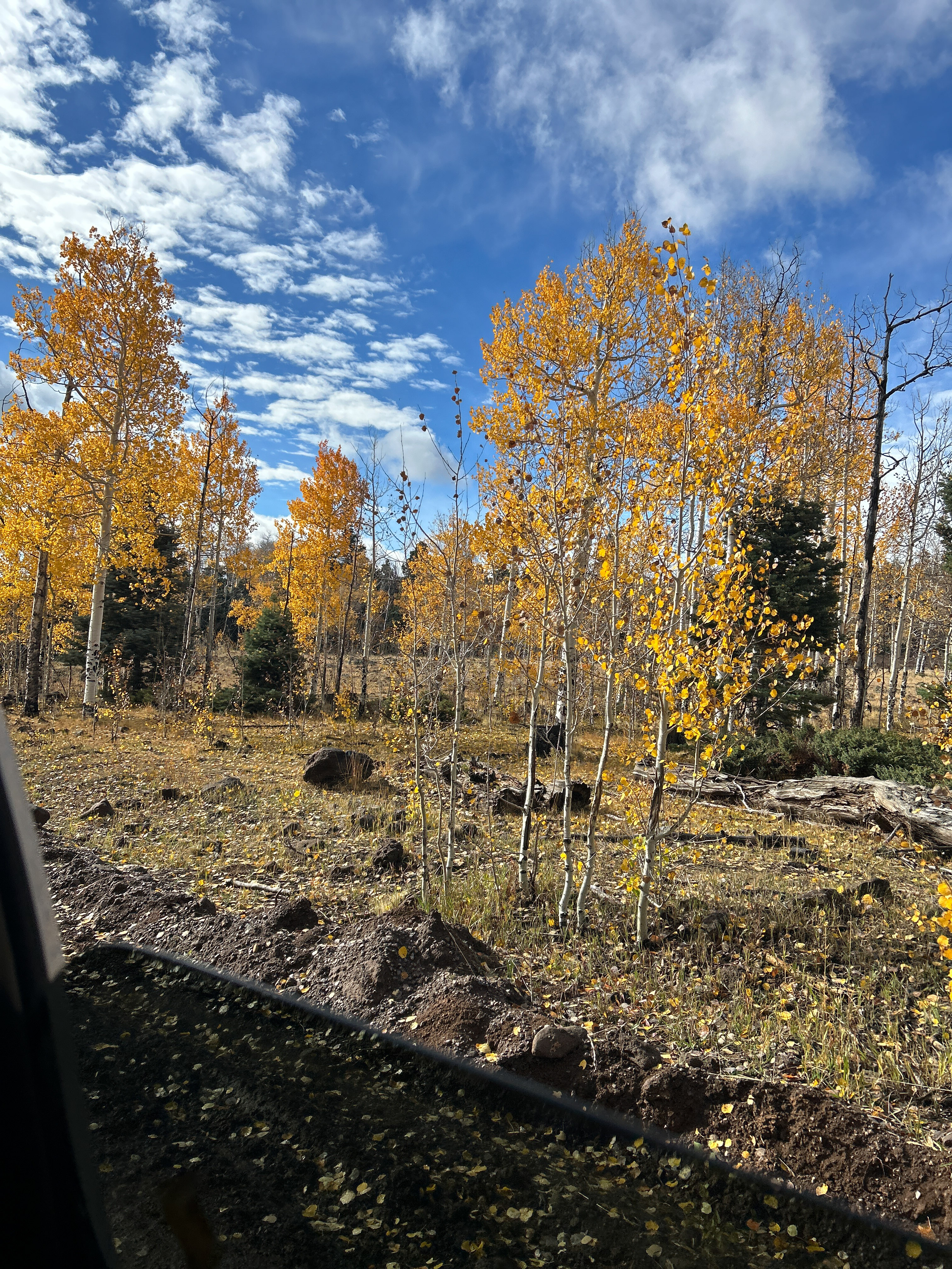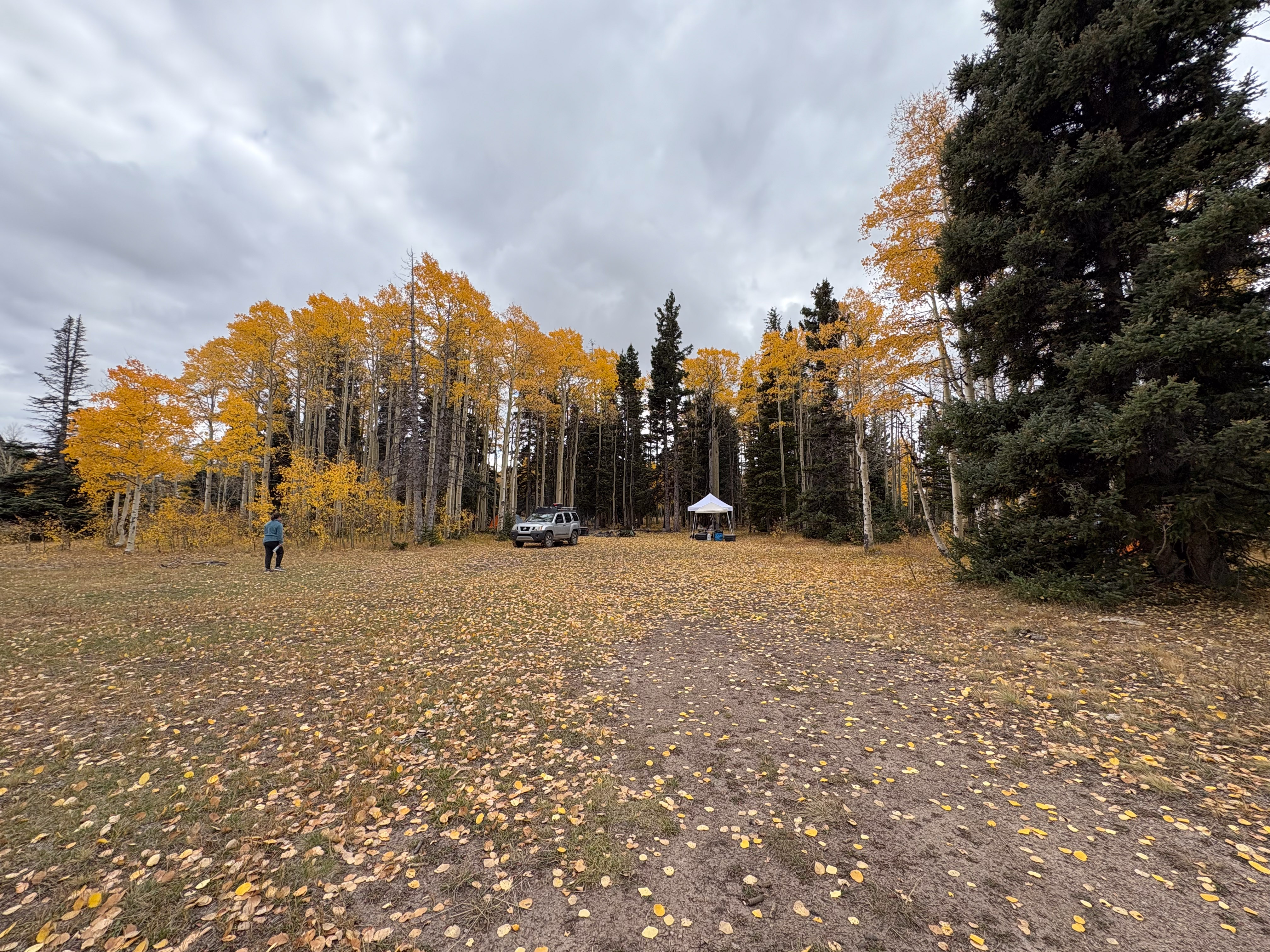 Also, the Aspens were perfect. We had been concerned that we missed the peak leaf coloring, but as we were rolling in on Thursday there were still plenty of patches that were green and few leaves were down on the ground, and when we rolled out on Sunday there was no green at all and half the leaves blanketed the ground from the wind we had received. So we had the best possible timing for this fall’s colors in that area.