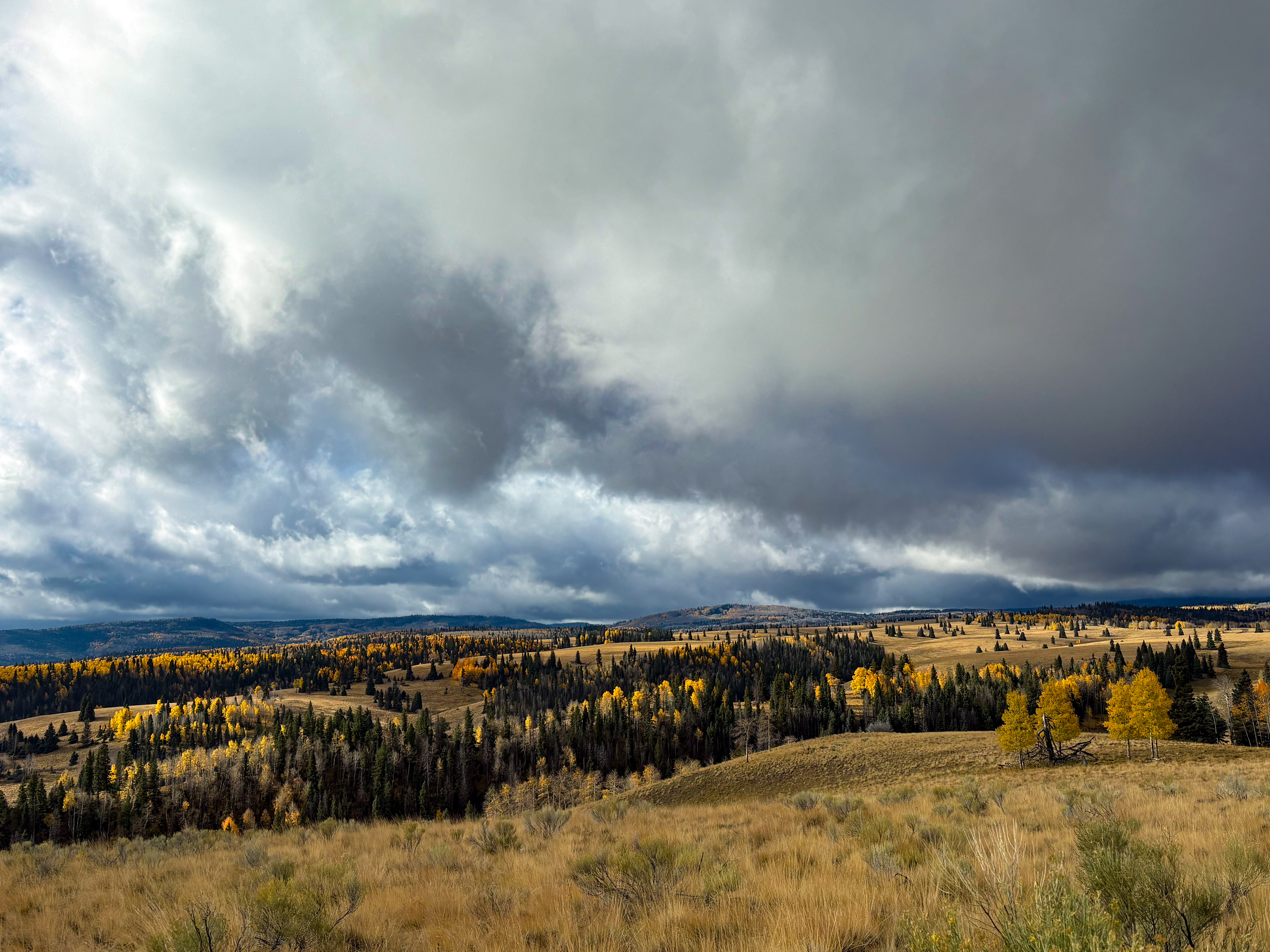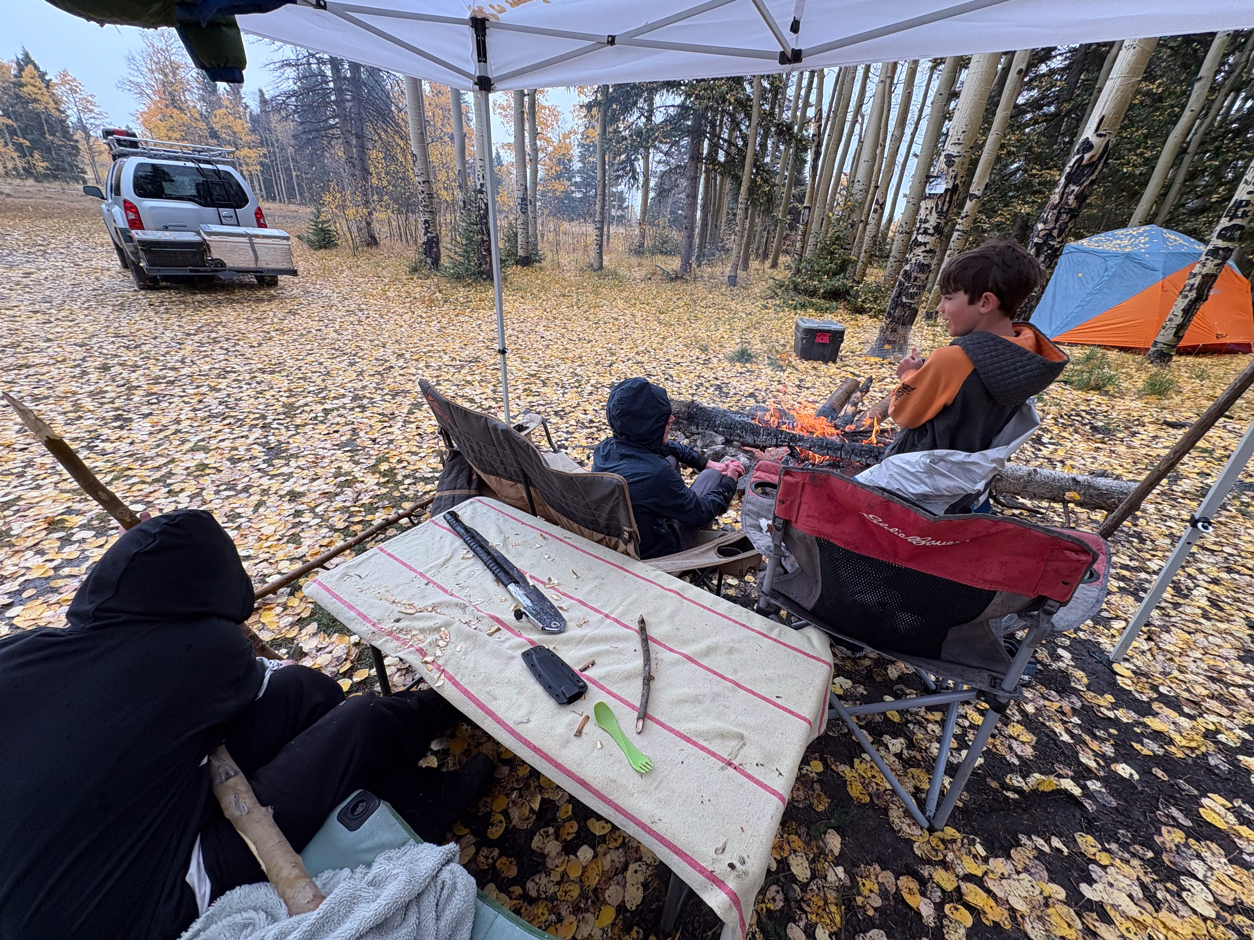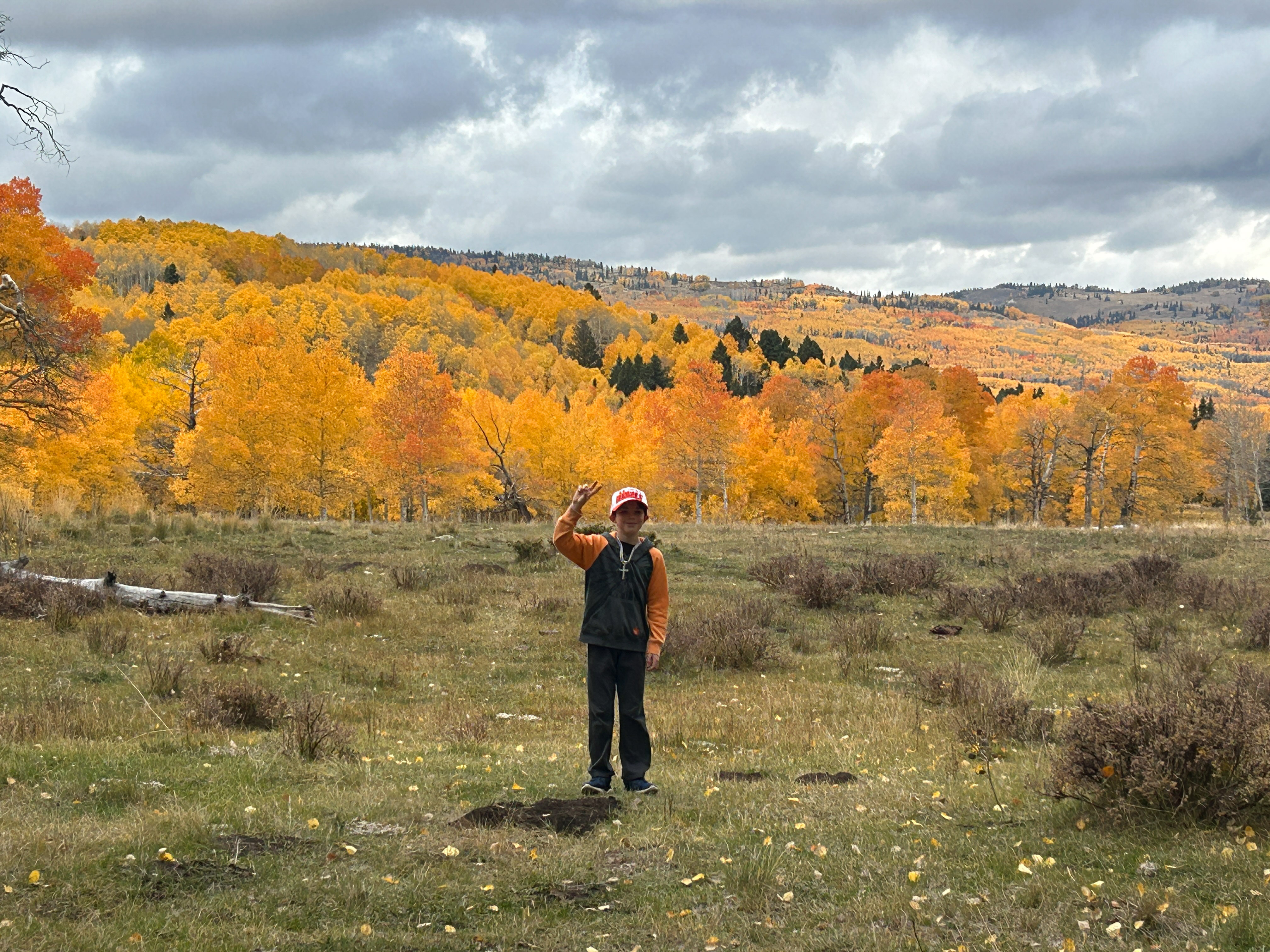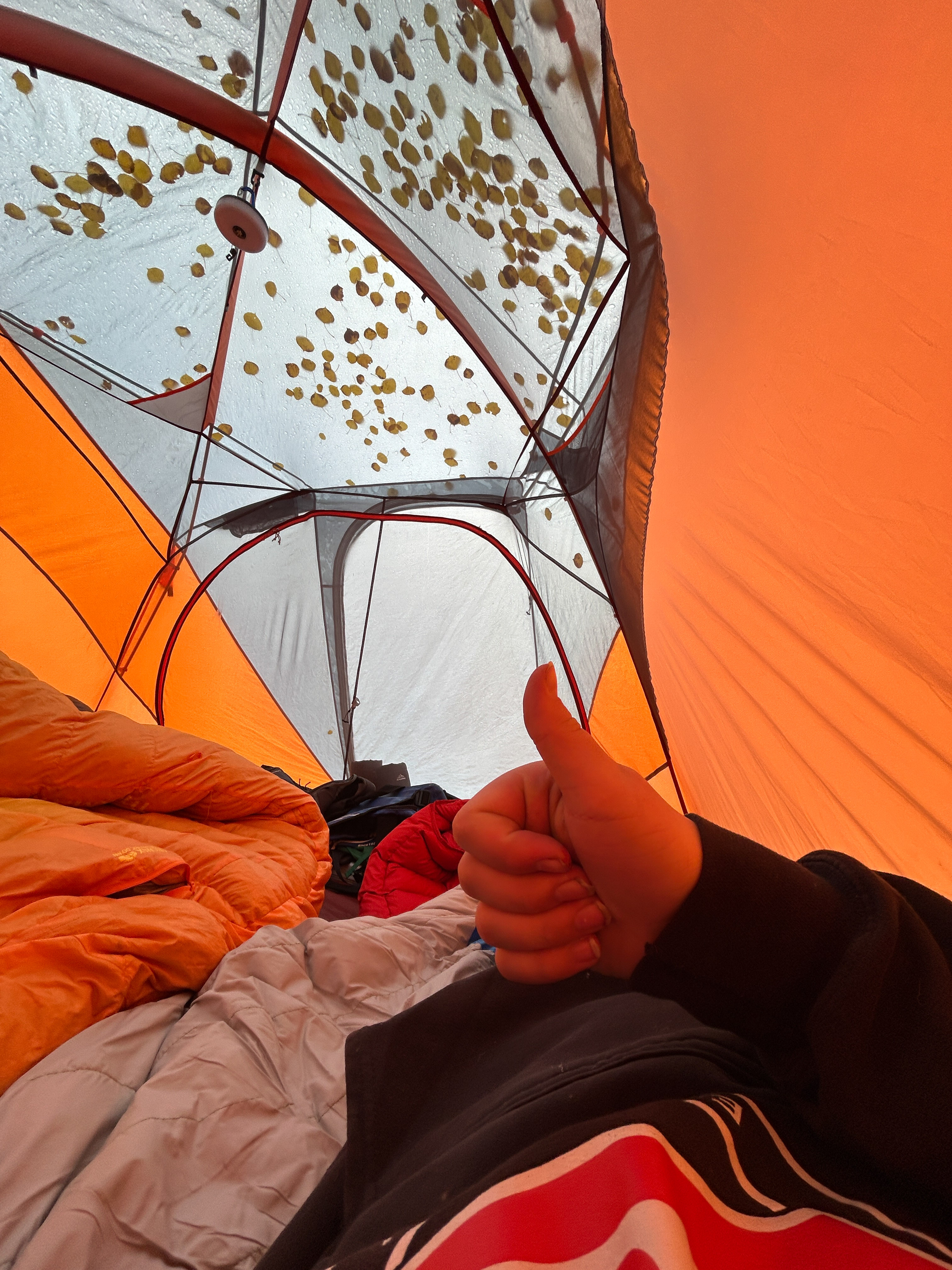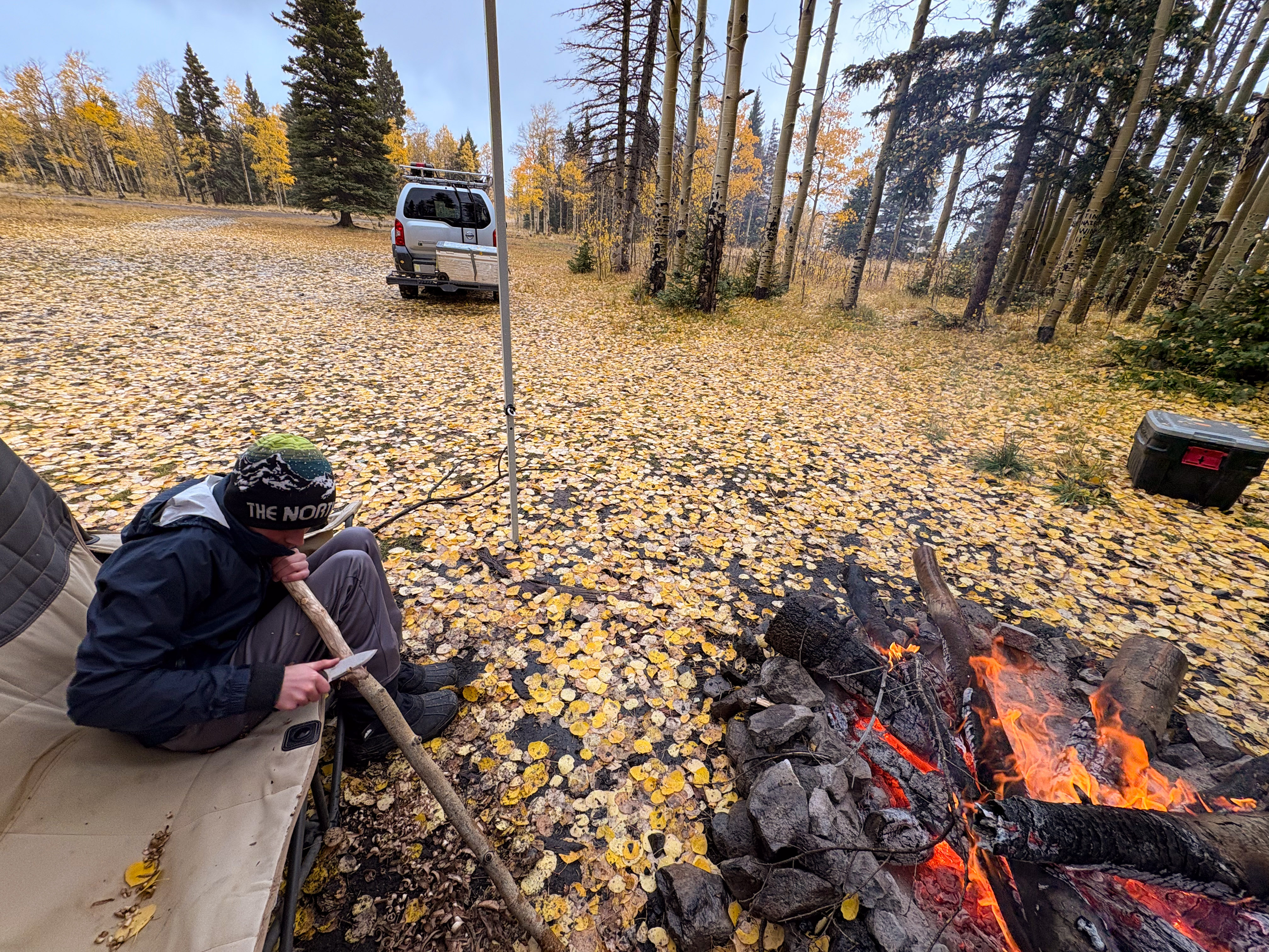 Also, the Aspens were perfect. We had been concerned that we missed the peak leaf coloring, but as we were rolling in on Thursday there were still plenty of patches that were green and few leaves were down on the ground, and when we rolled out on Sunday there was no green at all and half the leaves blanketed the ground from the wind we had received. So we had the best possible timing for this fall’s colors in that area.