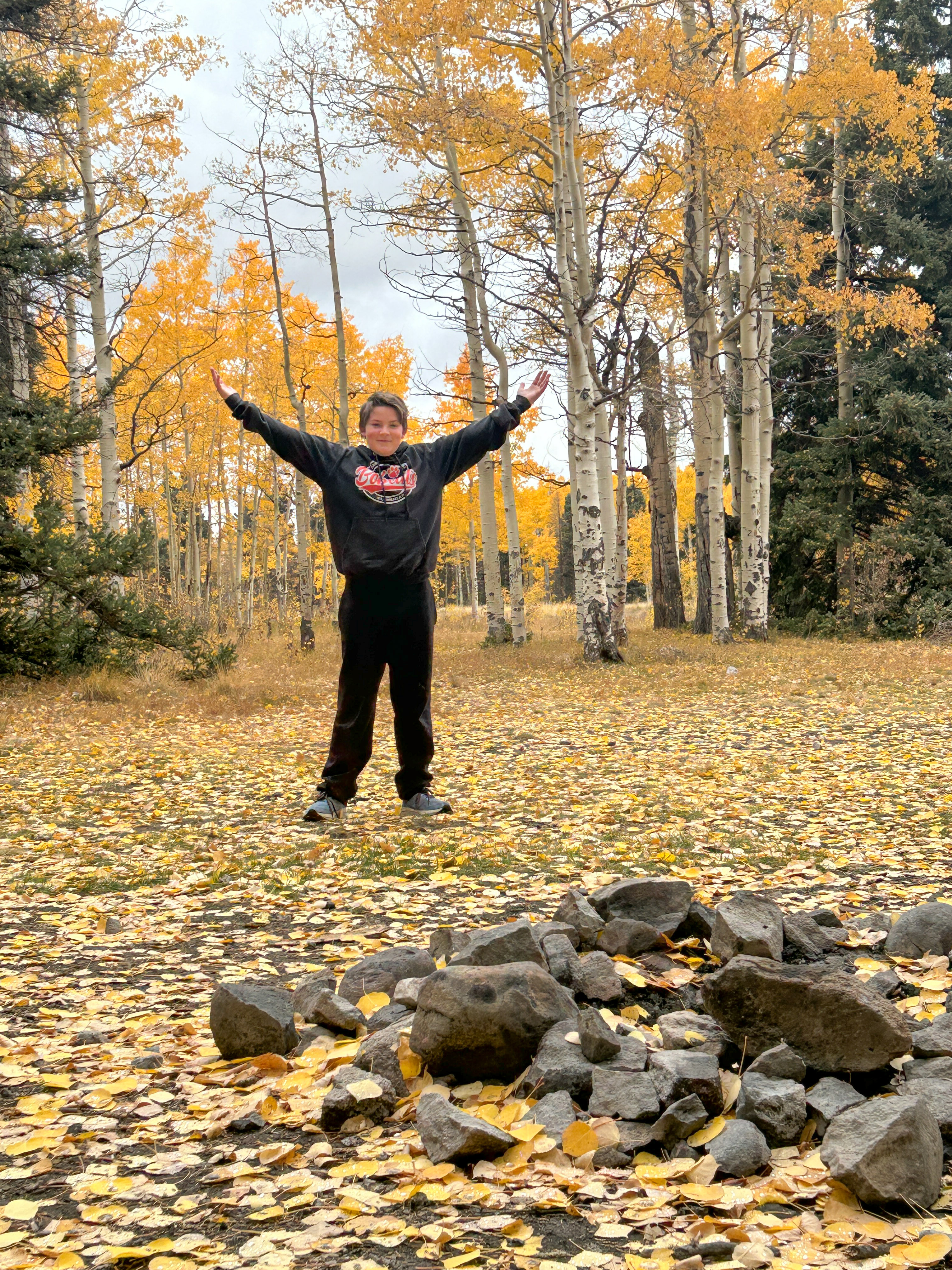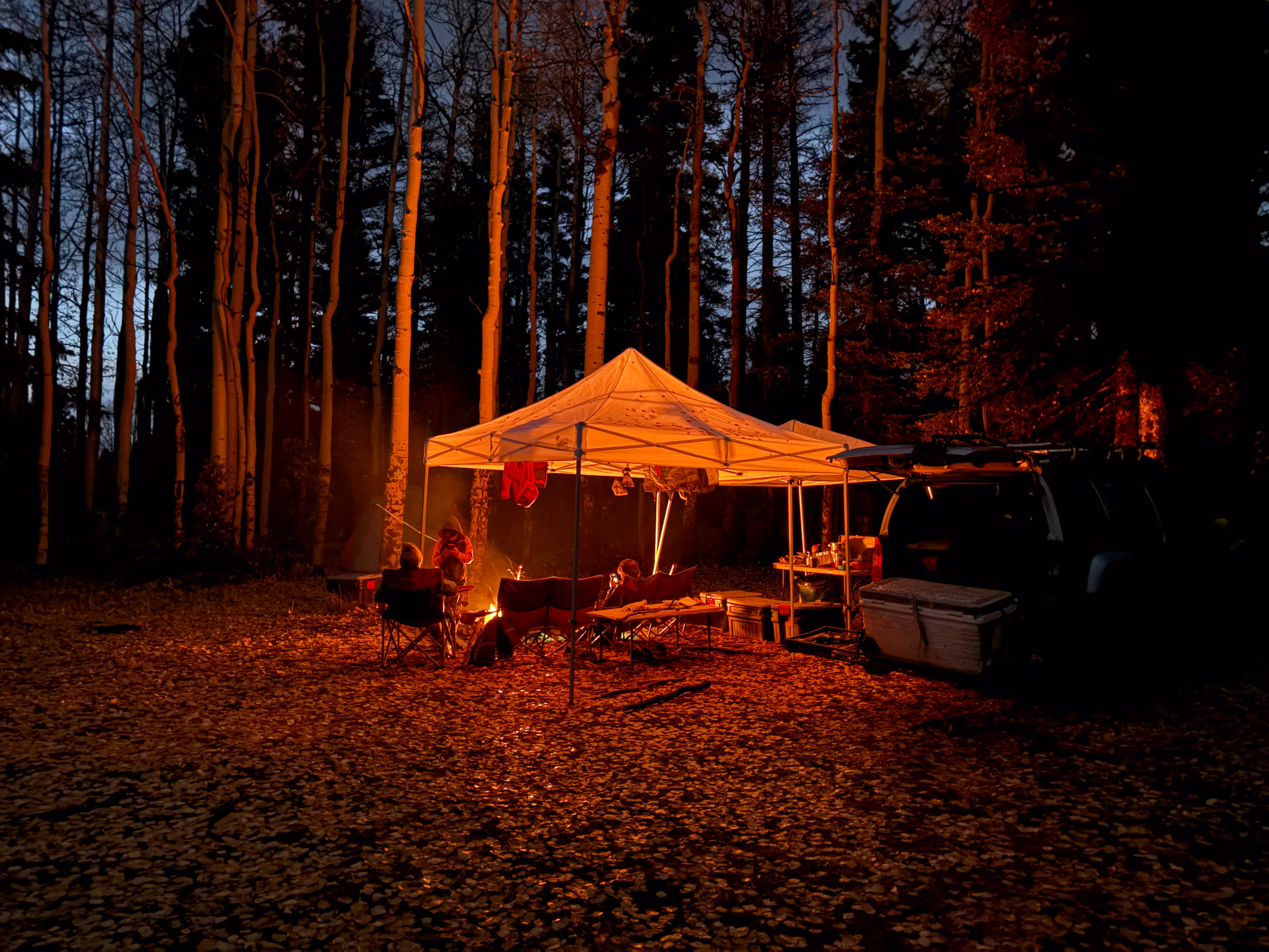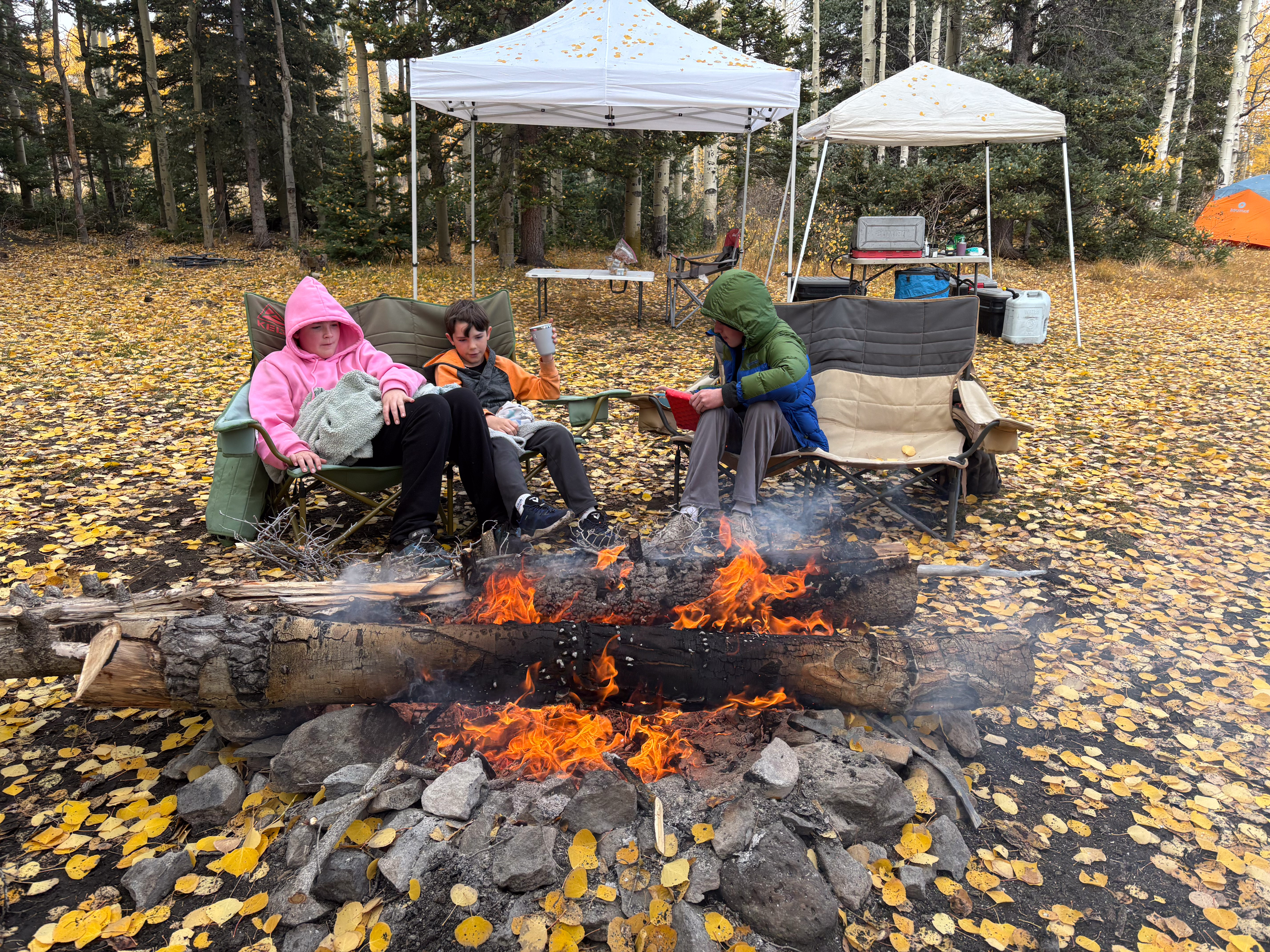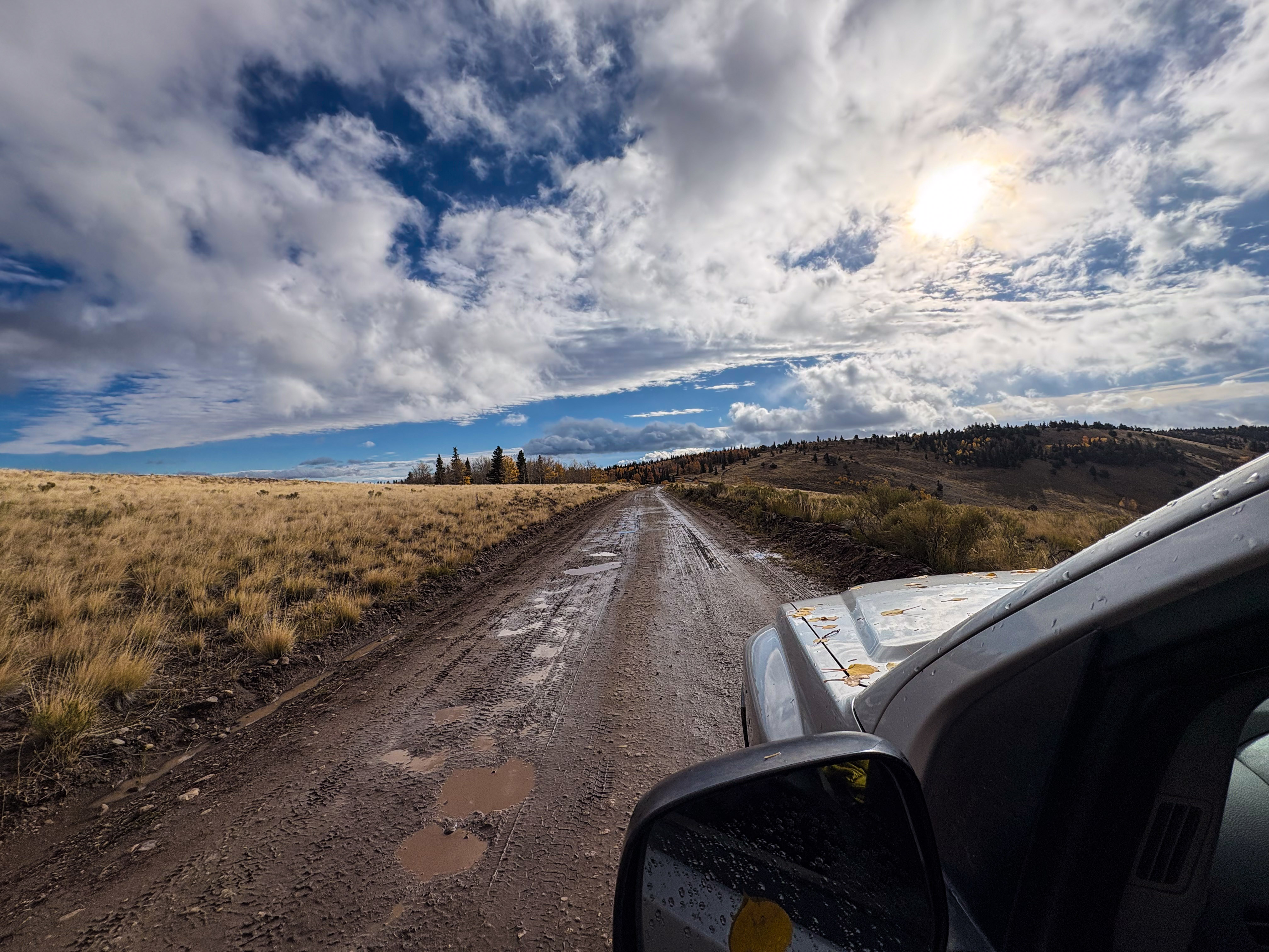 Also, the Aspens were perfect. We had been concerned that we missed the peak leaf coloring, but as we were rolling in on Thursday there were still plenty of patches that were green and few leaves were down on the ground, and when we rolled out on Sunday there was no green at all and half the leaves blanketed the ground from the wind we had received. So we had the best possible timing for this fall’s colors in that area.