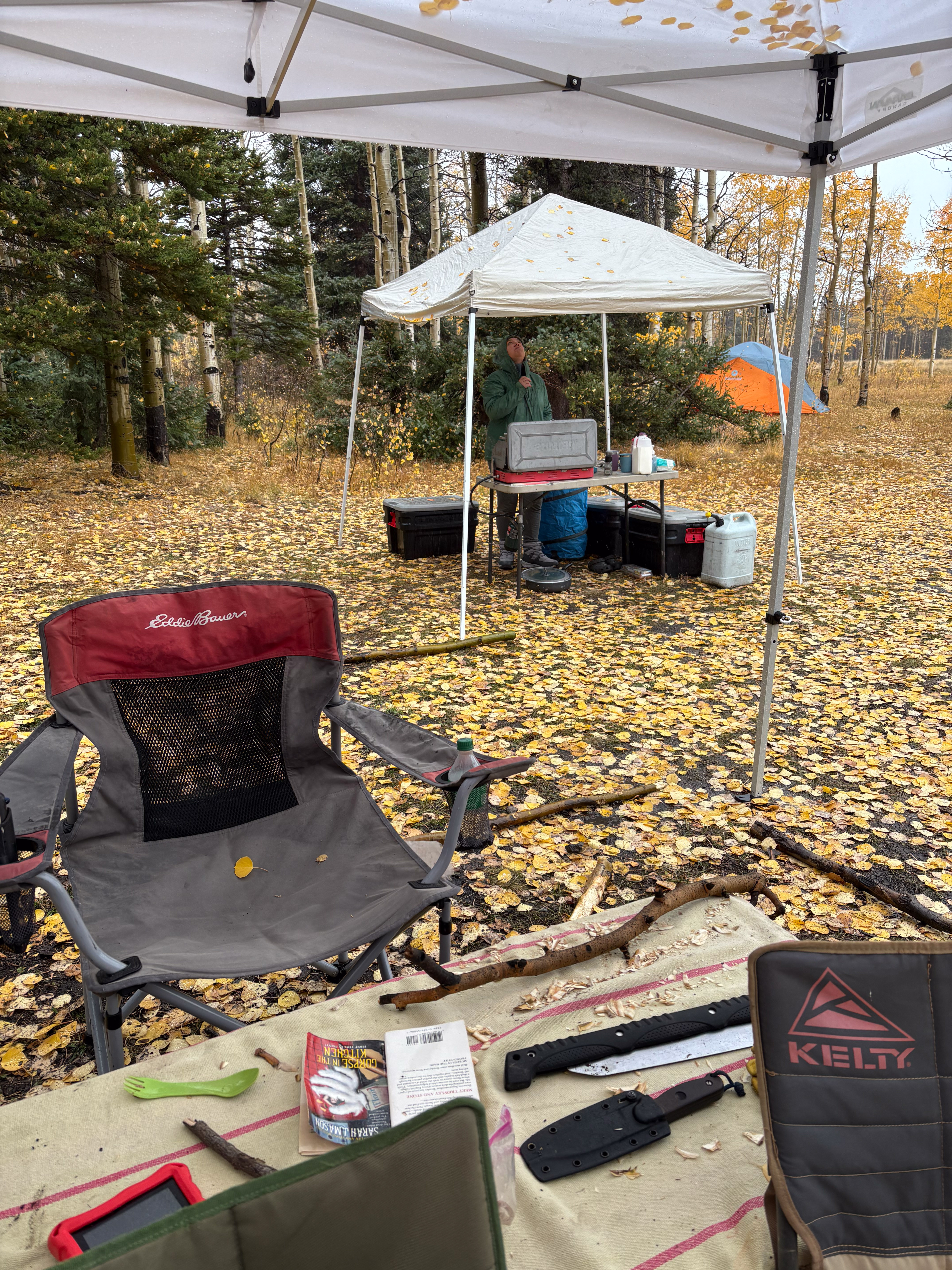 We knew that rain was likely, so we brought a second smaller canopy to use for the cooking area. That was key, because we basically lived under the canopies and in the tents for two and a half days.